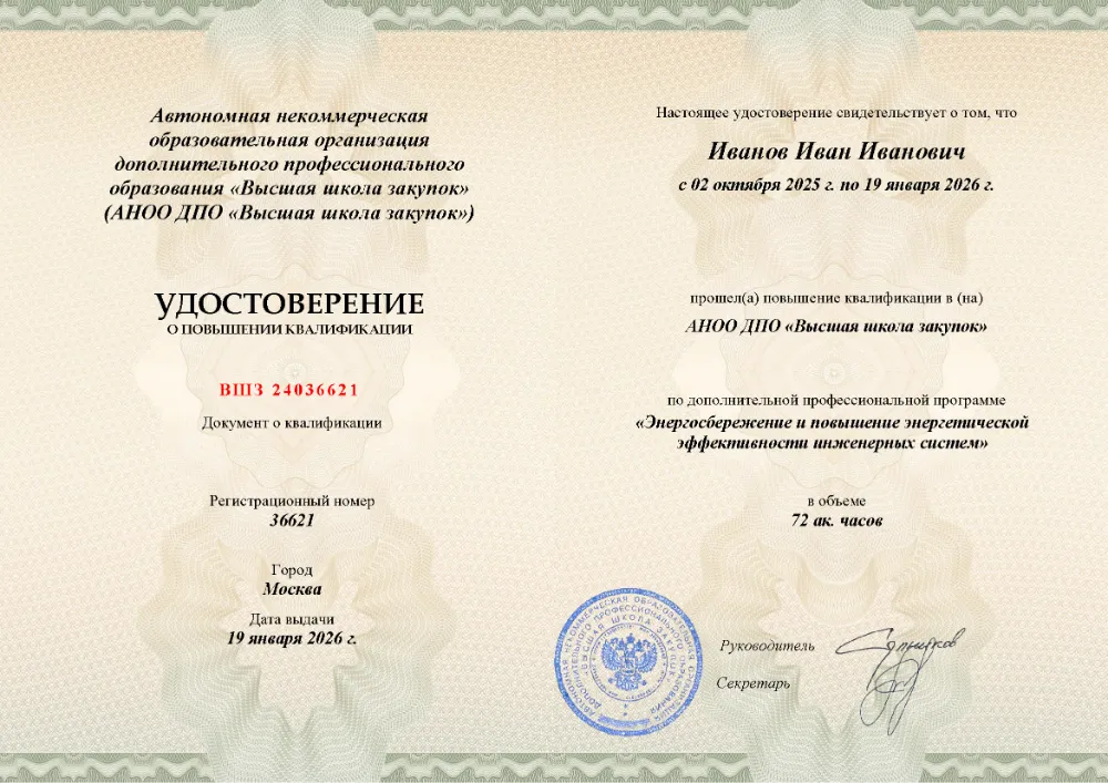 Программа повышения квалификации (72 часа) по энергосбережению и повышению эффективности инженерных систем в в Калуге. Освойте современные методы аудита, энергоменеджмент, инструменты оптимизации и цифровые технологии для снижения затрат в зданиях и на предприятиях.